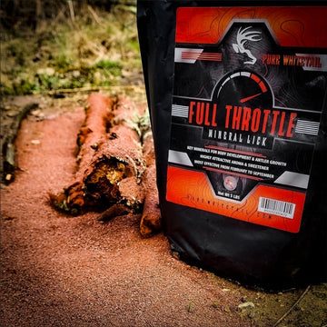Full Throttle is effective anytime of the year, although best results will be in the spring and summer months during the antler-growing and fawn development cycles. With a sweet aroma that deer can not resist, this mineral attractant has everything a whitetail deer needs to thrive. Most so called “deer minerals” on the market are loaded with excess salt because its a cheap filler. Full Throttle Deer Mineral has max of 35% salt.
