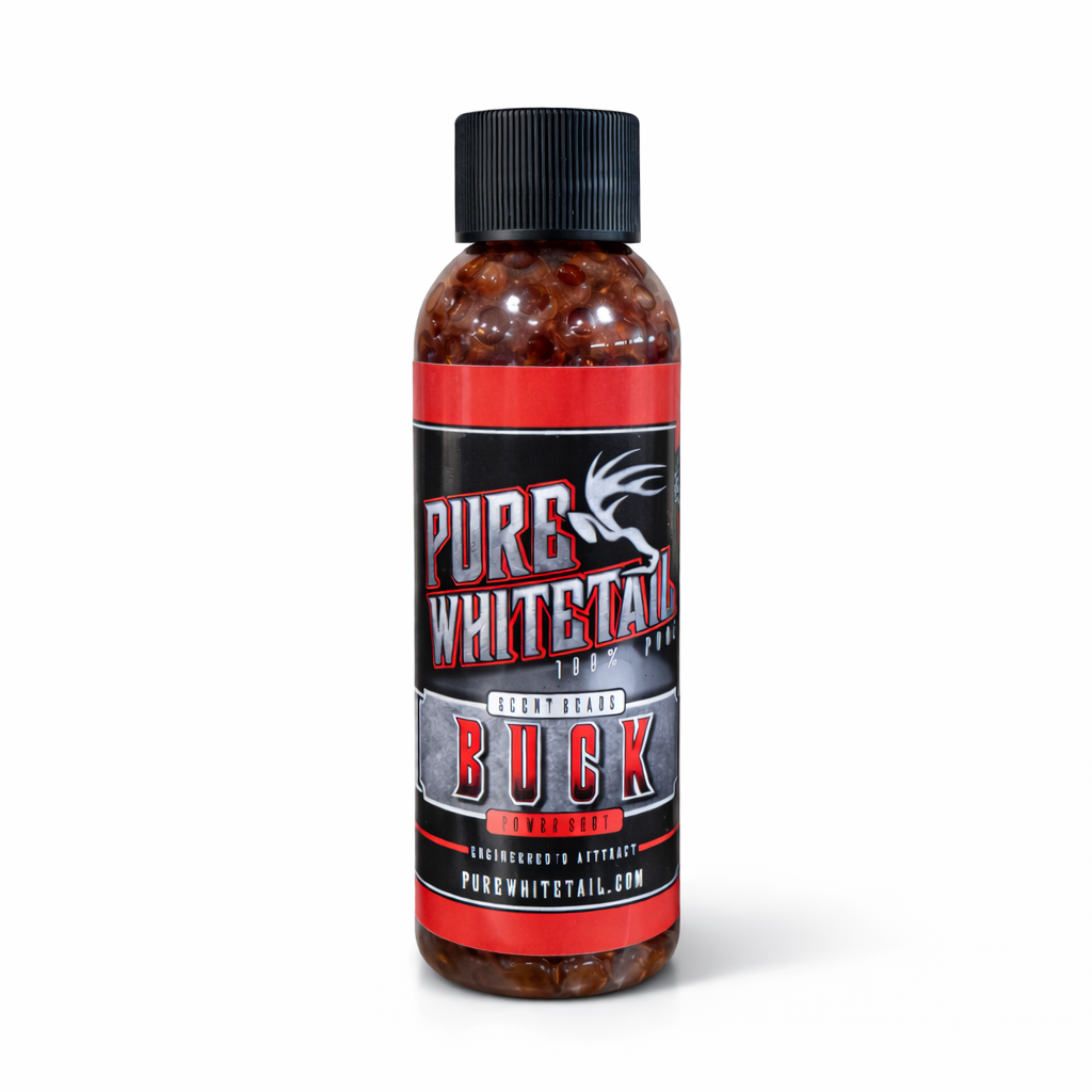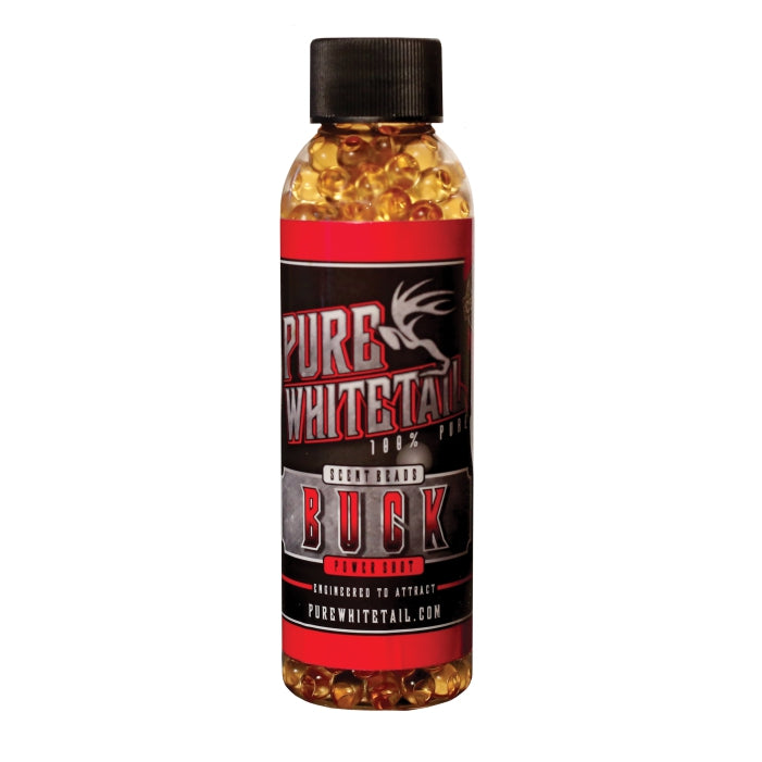 Pure Whitetail’s Power Shot Buck Scent is time releasing scent beads infused with 100% pure deer urine collected from a single buck from Pure Whitetail’s own deer herd. Time releasing scent beads ensures scent remains active in the area over a longer period of time. It is fresh, never frozen, contains no additives or preservatives, and is never held over from the previous season. Power Shot Buck Scent is a deer scent that can be used in all seasons. It is best used as an attractant and calming scent in pre-existing or mock scrapes.