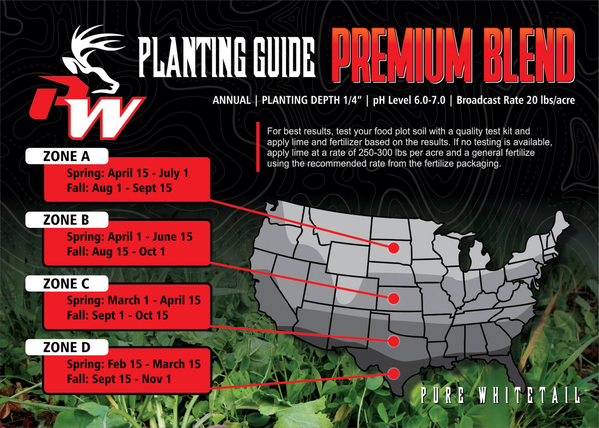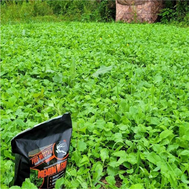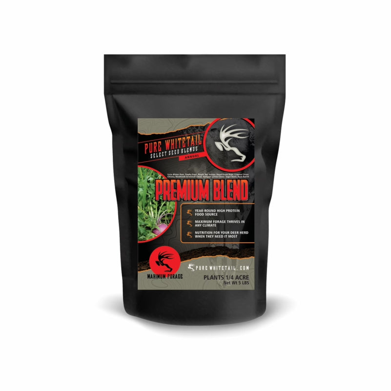 Pure Whitetail’s PREMIUM BLEND is a unique selection of 10 varieties of seed formulated to provide year-round forage in any climate. This mix stays green all season and into the winter giving bucks needed energy during post-rut recovery. Great source of protein and highly attractive, meaning you bring more deer to your property and keep them there!