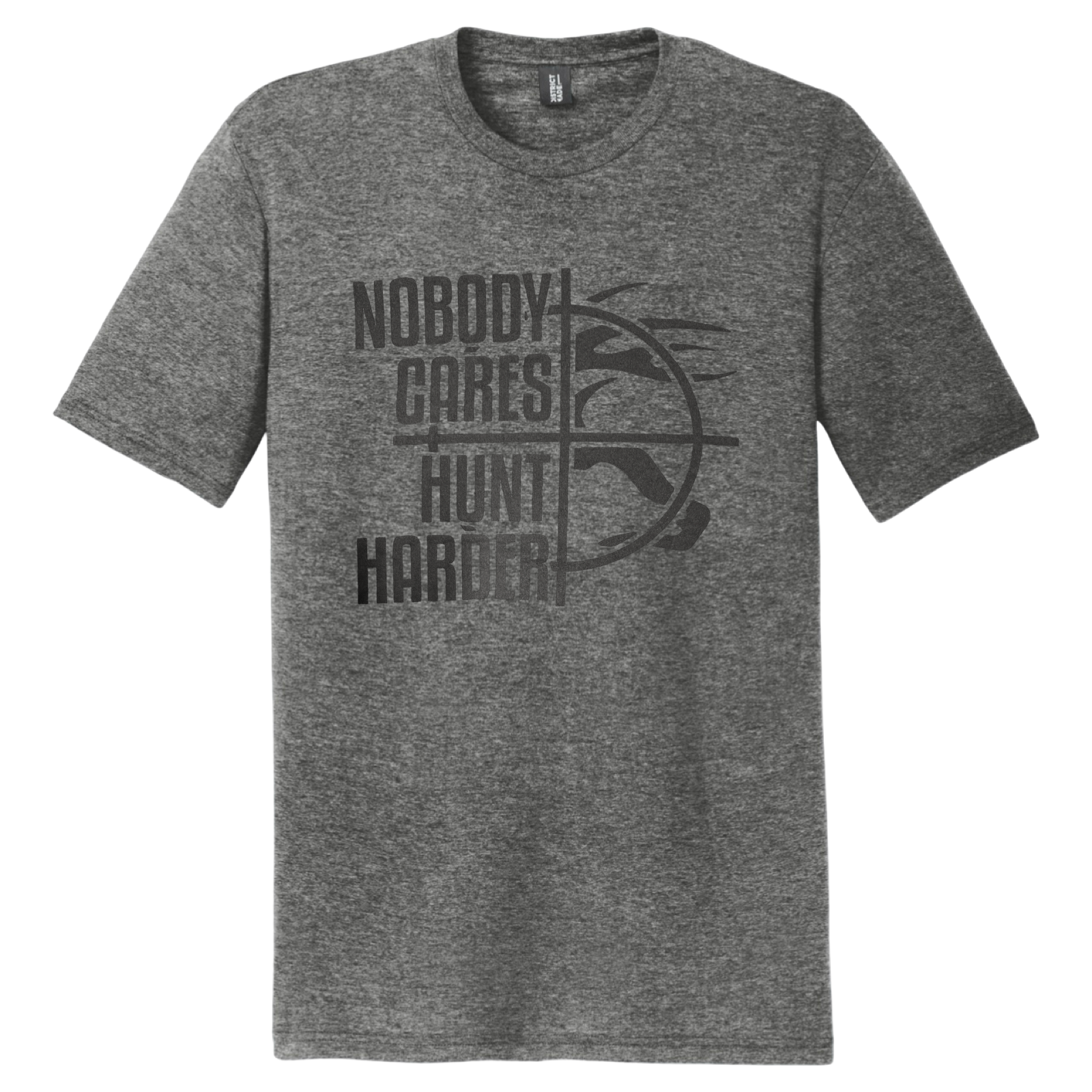 The ALL NEW PW Nobody Cares Hunt Harder T in an ultra comfortable tri-blend. Grey