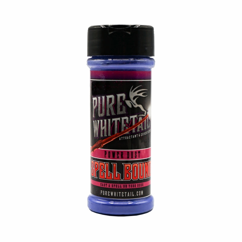 Pure Whitetail’s Spell Bound contains a proprietary blend of smells formulated to stimulate habitual chewing, licking and pre-orbital rubbing on active and mock scrape licking branches. Proven to initiate and increase scrape visits. Improves ability to inventory herd through trail camera monitoring of scrape sites to determine target bucks. Successful in luring in whitetail deer from afar as they seek and destroy anything covered with this attractant. An extremely addictive attractant available in Pure Whitetail’s very versatile Power Dust form, this product can be used in all seasons.