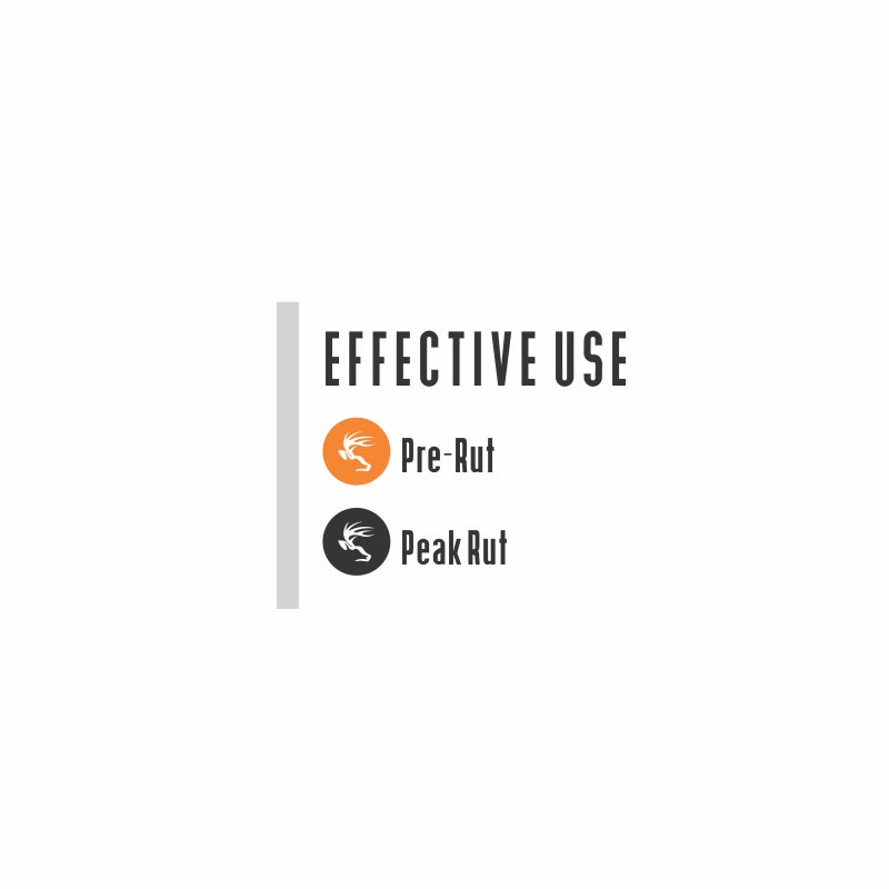 USE: During the pre-rut and rut, use in scrapes and on overhanging licking branches on Pure Whitetail Flex Wicks. Use on drag lines such as Pure Whitetail’s Last Track and on soaked Flex Wicks around your treestands and blinds. Drive dominant bucks crazy as they search for the intruder encroaching on their does and their territory.